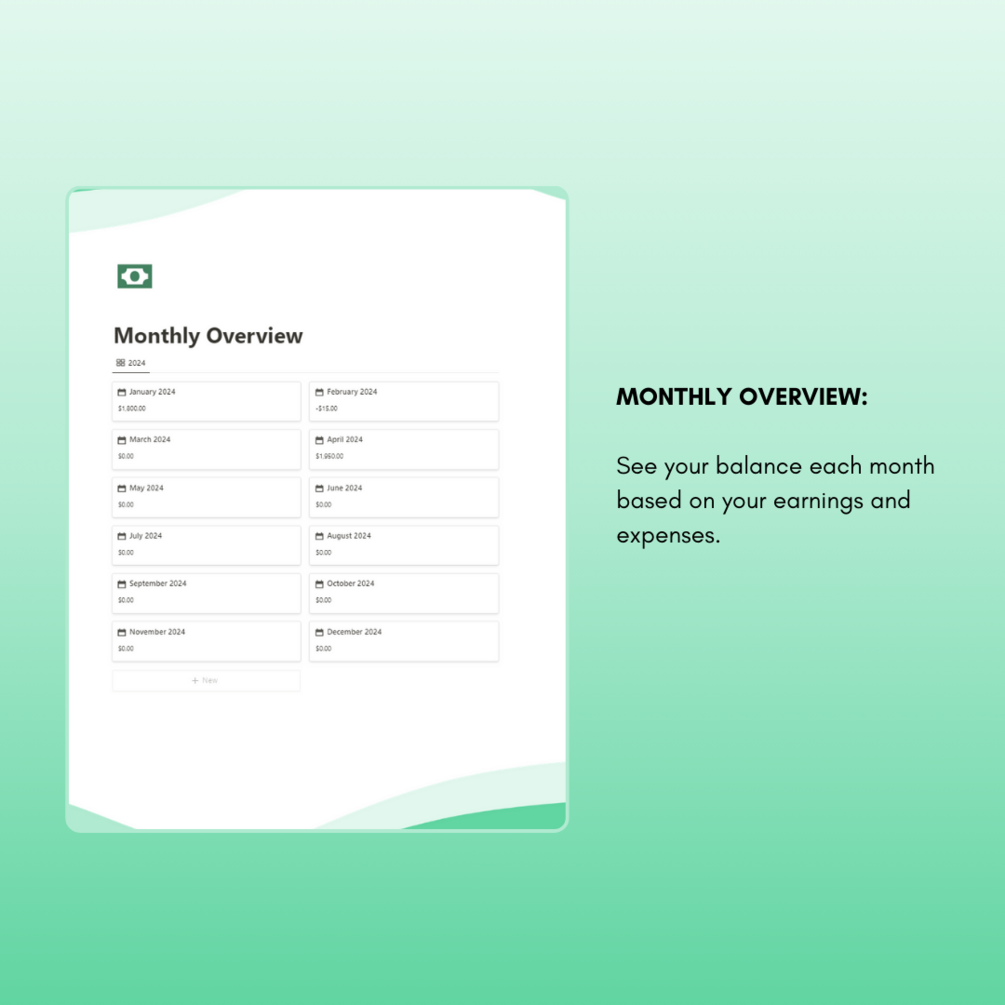-Monthly Overview -> see your balance each month based on your earnings and expenses.