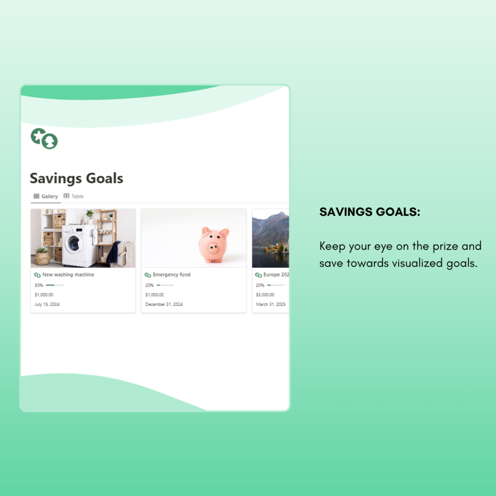 -Savings Goals -> keep your eye on the prize and save towards visualized goals.