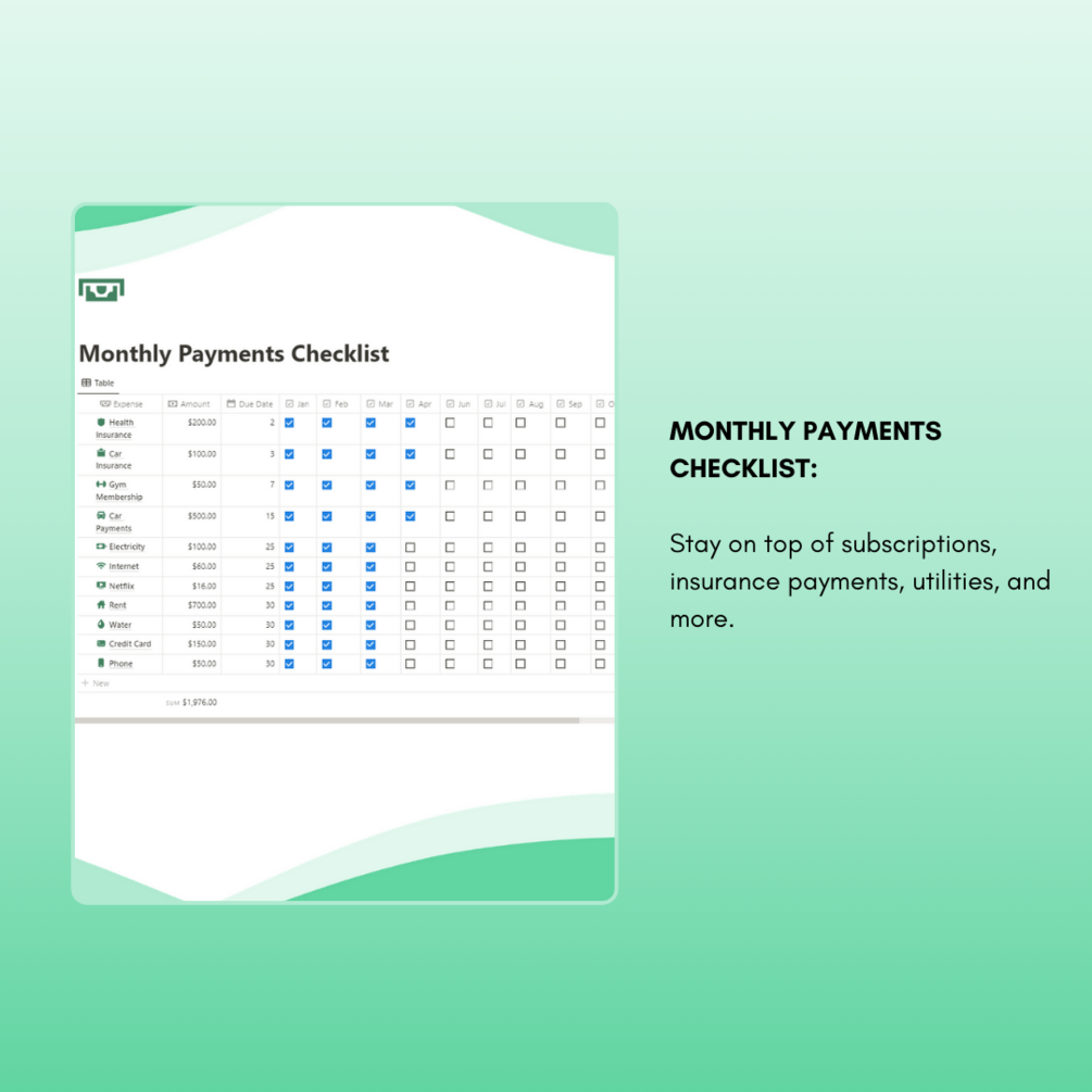 -Monthly Payments -> stay on top of subscriptions, insurance payments, utilities, and more.